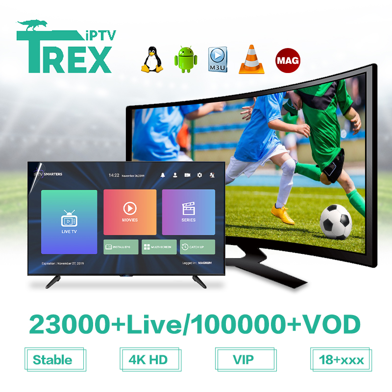 - More than 100,000 Movies and 19,000 series, In addition to VOD in different languages, Trex IPTV also has NETFLIX SPORT Adult VOD