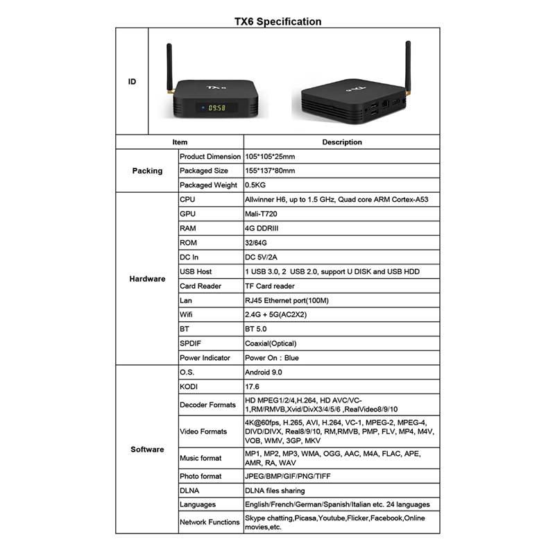 TX6M smart box tv android 9.0 high quality iptv git