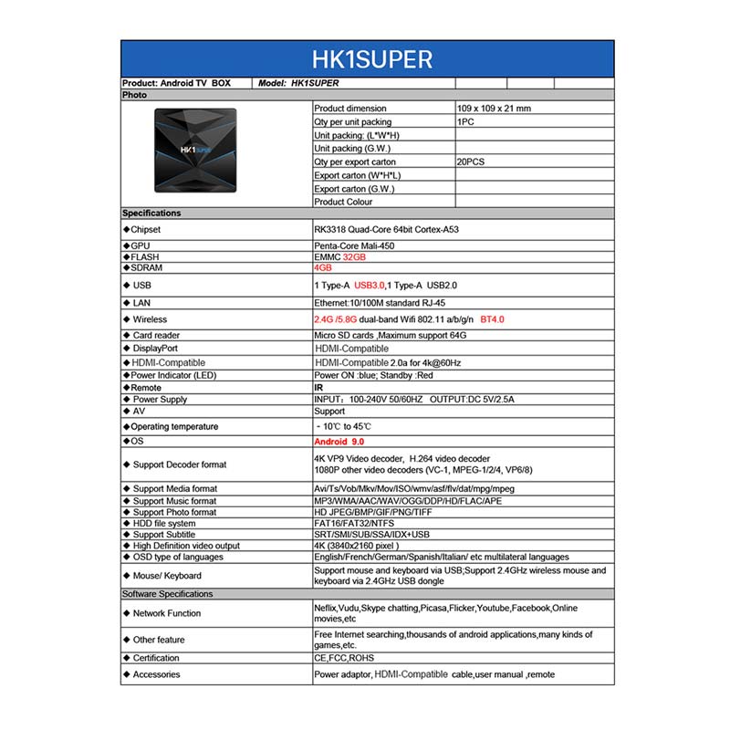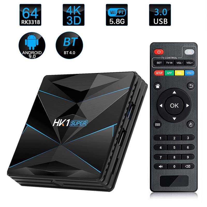 HK1 Super Android 9.0 Smart TV BOX Google Assistant 4G 64G RK3318 4K 3D Utral HD TV Wifi Play Store Free Apps Fast Set top Box
