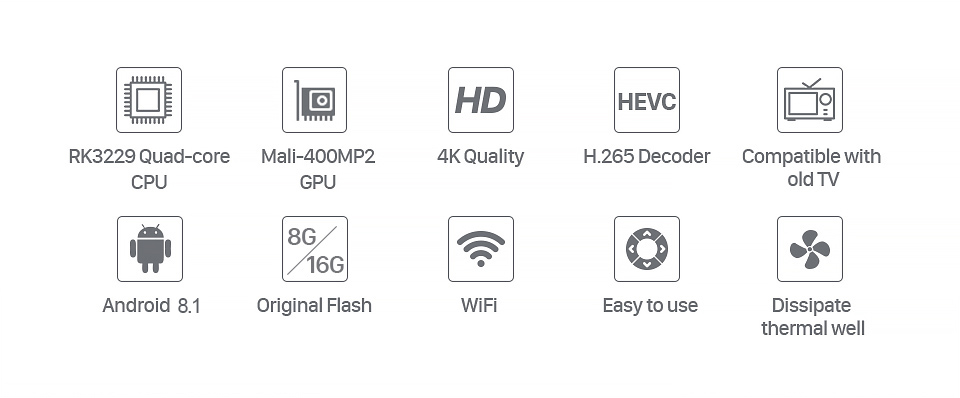 – Amlogic S905W, Quad Core ARM Cortex A53, no flashback, super video capabilities.