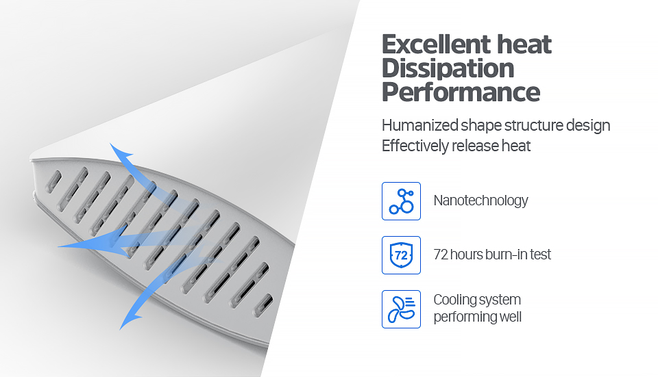 – PC plastic shell, with excellent stability, heat resistance and high strength, to ensure long time operation.