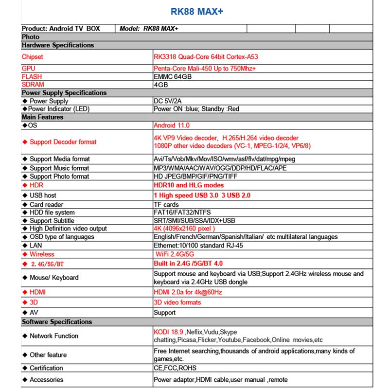 ?【Super Simple Setting】Simple and simple 3-step setting! RK88 MAX+ Android TV BOX 11.0 can be connected to the HD interface of any TV and PC through the HDMI port. You can also connect the 128GB android box to the old TV through the AV port. Super simple setup, plug and play ready.