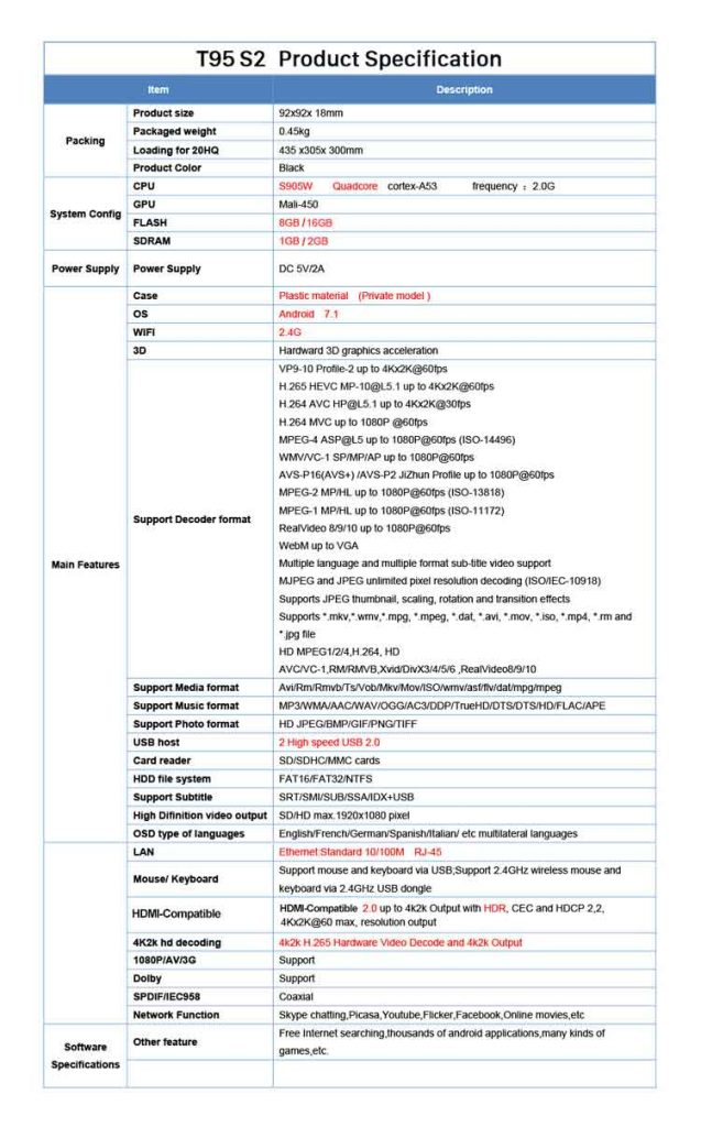 - Support 4K: This TV box supporting 4K Ultra HD and H265 Decoding Technology. No need go to the cinema, T95S2 android 7.1 tv box supports 4k no problem! Enjoy your leisure time with our 4K HD media player.